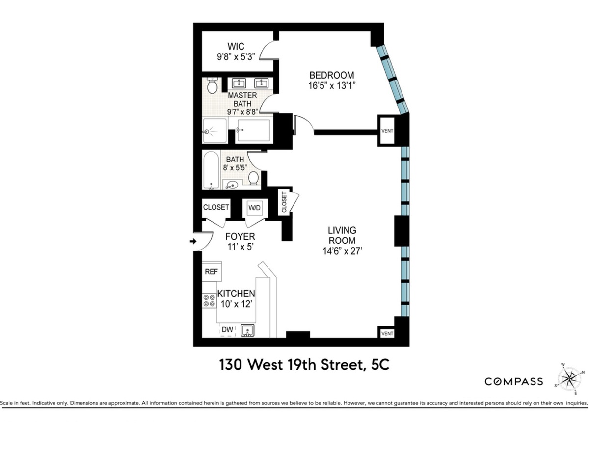 Outfitted with central air conditioning, sleek -dark hardwood floors, a full sized washer/dryer, remote controlled blinds in the living room, and full second bath. 5C also comes with a separate private storage cage for tenant use which is included in the rent.
