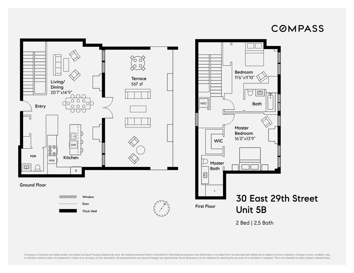At just under 1800 SF of interior space and almost 600 SF of outdoor space, 5B/6B features a fantastic northern view overlooking iconic architecture. Interiors boast rusticated hardwood floors, bronze-finished hardware, and soaring double height ceilings. The open kitchen with Miele appliances features custom ultra-matte, dark charcoal woodwork, metal-framed glass upper cabinetry, and Calacatta honed marble countertops. Anchored by a custom-designed vanity, the dramatic master bath offers brass-finished fixtures and radiant heated floors in dark, veined marble. A powder room for guests, ample closet space, and washer/dryer complete this ideal home.