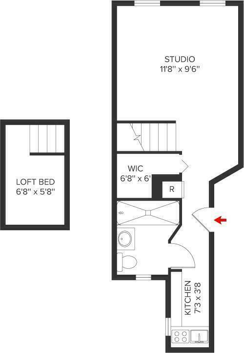 Welcome home to this charming studio located in the heart of Hell's Kitchen on beautiful tree lined West 46th Street! 4D is a south facing home with incredible natural light and open city views for sunshine all day long. Additional features include exposed brick, high ceilings, and a customized queen sized loft bed with real staircase which allows for a walk in closet below.