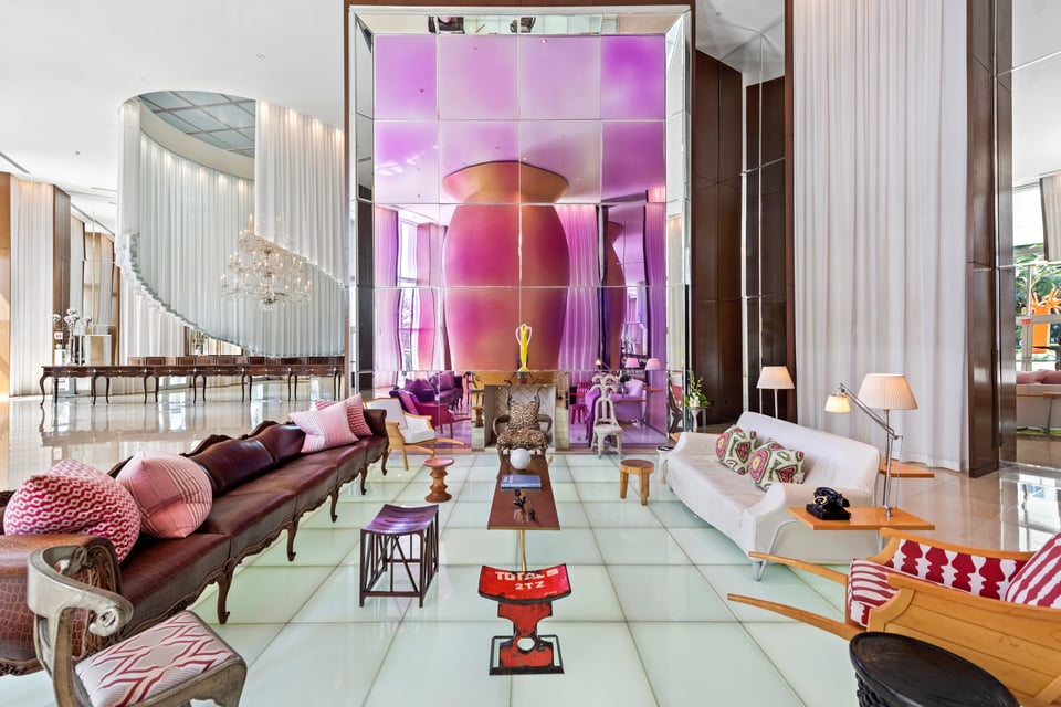 Icon South Beach boasts a distinctive design by the legendary Philippe Starck. The architecture is both bold and elegant, showcasing Miami's vibrant style. Its striking appearance is a landmark in South Beach.