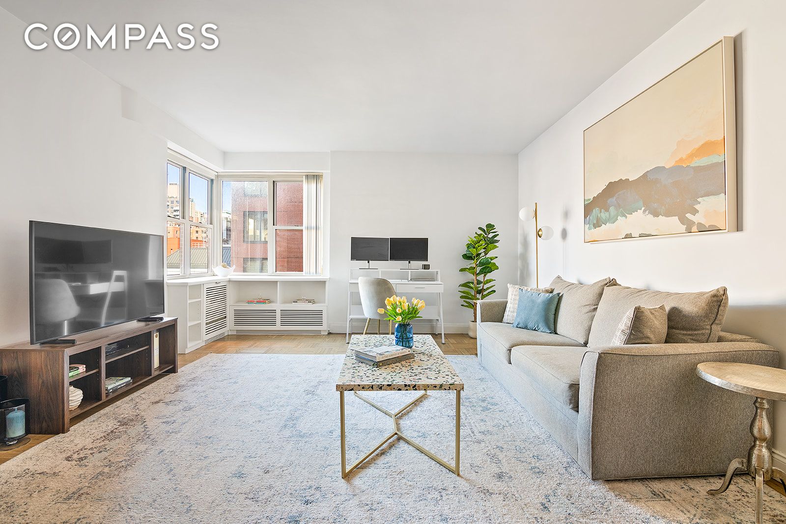 The bedroom features plenty of space for a large king bedroom set and a quiet sunny corner exposure. Storage is abundant throughout including charming built-ins under the bedroom window next to your decorative built-in cabinetry to house heat and through the wall A/C for year-round control. Additionally, 10A features a large custom bedroom closet with both adjustable shelving and hanging space.